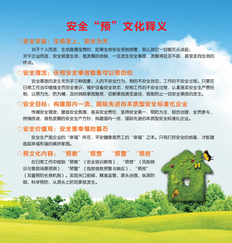 (二)執(zhí)行理念 發(fā)展理念:依托煤化優(yōu)勢 綠色穩(wěn)健發(fā)展 管理理念:人性化 精細(xì)化 規(guī)范化 市場理念:客戶是產(chǎn)品的終極裁判 品牌是企業(yè)成功的標(biāo)志。 人才理念:多渠道選拔人才 每個(gè)崗位都可成才 成本理念:低成本就是核心競爭力 創(chuàng)新理念:處處都有提升空間 人人都是創(chuàng)新主體 安全理念:任何安全事故都是可以預(yù)防的 環(huán)保理念:踐行社會(huì)責(zé)任 打造綠色企業(yè) |
