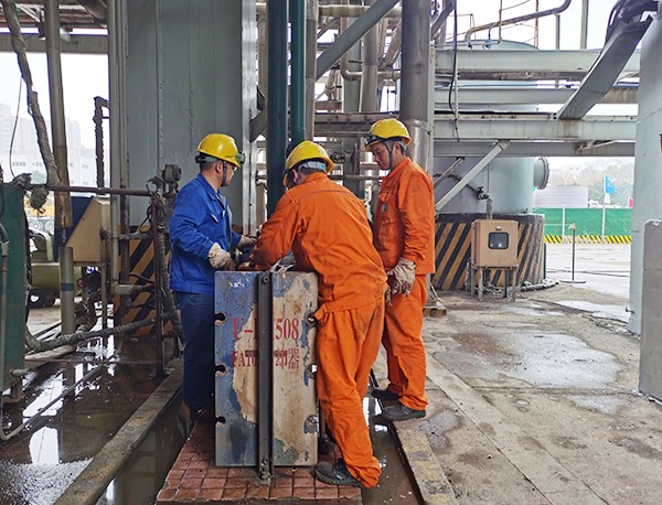你看,衛(wèi)生小組人員對(duì)檢修現(xiàn)場(chǎng)遺留的垃圾進(jìn)行及時(shí)清理、框架十樓師傅們相互配合拆卸DA102填料……