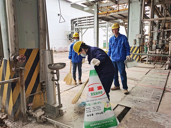 2020年檢修的第七天,天空下起了雨,微風(fēng)四起,尿素現(xiàn)場(chǎng)依舊一片繁忙,檢修人員頂著斜風(fēng)細(xì)雨,有條不紊地進(jìn)行著檢修任務(wù),雨水打濕了他們的衣服,臉上已分不清是雨水還是汗水,天氣絲毫沒有影響到正在檢修的他們,一個(gè)個(gè)埋頭苦干全然不顧自己。