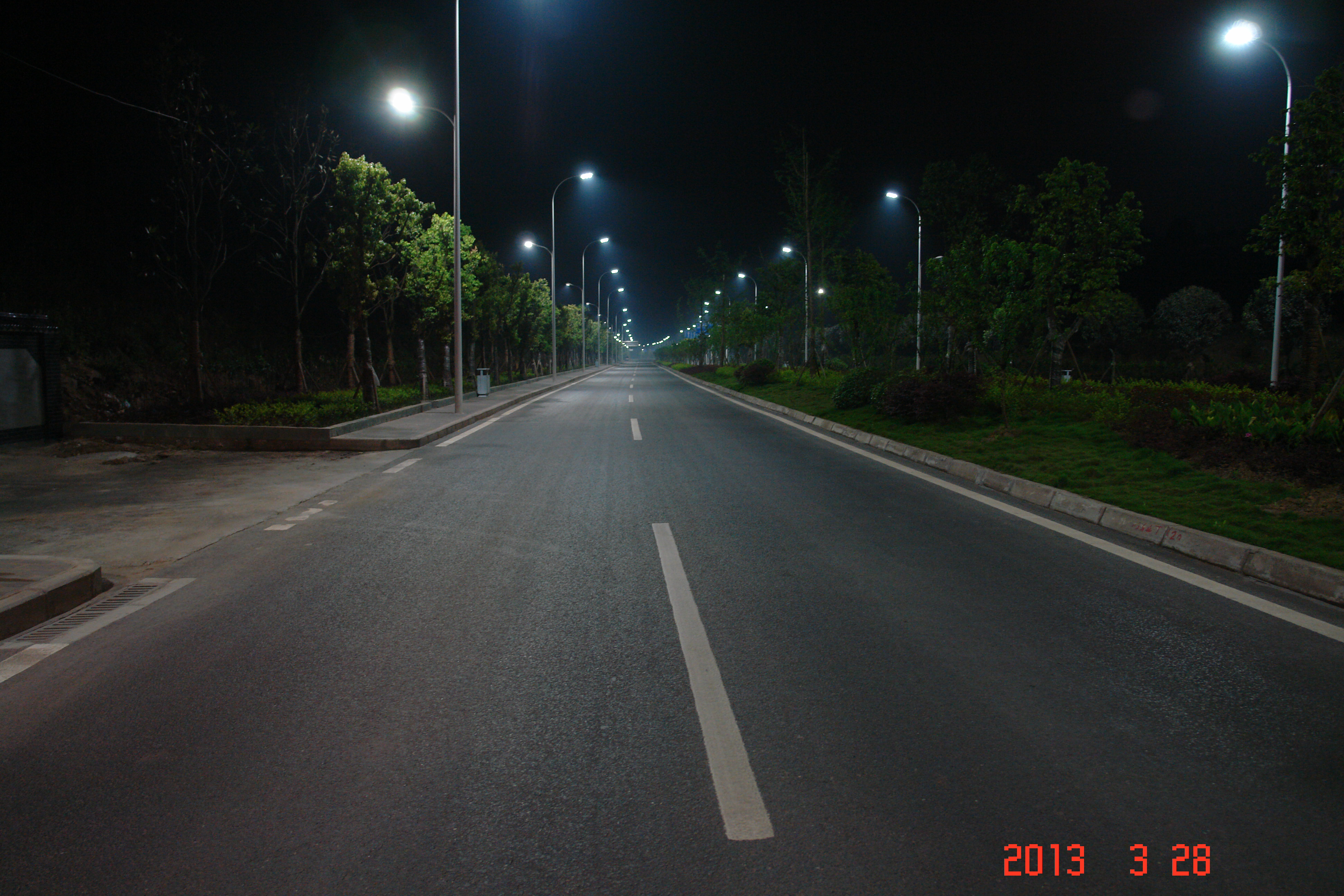 該產(chǎn)品先后在G50重慶渝涪高速公路全線收費(fèi)站、服務(wù)區(qū)及鐵山坪、華山、黃草山、同心寨、廟堡隧道,G5013渝蓉高速全線收費(fèi)站、服務(wù)區(qū),渝遂高速青木關(guān)隧道,渝中區(qū)菜袁路、龍家灣、黃沙溪、鵝嶺、袁家崗草坪隧道,九龍坡區(qū)石新路、石坪橋、陳家坪隧道,南岸區(qū)茶園渣場(chǎng)路、風(fēng)臨路、鵝風(fēng)支路,沙坪壩區(qū)漢渝路下穿隧道,合川區(qū),永川新城區(qū),江津區(qū)雙福園區(qū),銅梁區(qū)龍騰大道,豐都縣迎賓大道,四川省南充市東順路,云陽(yáng)縣全城區(qū)等百余處進(jìn)行了大規(guī)模應(yīng)用,獲得了良好的社會(huì)效益。2013年9月,在重慶市政府的支持下,我司在重慶市渝中區(qū)袁家崗草坪下穿隧道、鵝嶺隧道、九龍坡區(qū)陳家坪下穿隧道應(yīng)用了該項(xiàng)技術(shù)。經(jīng)重慶市照明管理局組織有關(guān)部門對(duì)袁家崗草坪下穿隧道工程現(xiàn)場(chǎng)測(cè)試,與對(duì)應(yīng)替換的原鈉燈相比,節(jié)電率達(dá)到70.14%。重慶市計(jì)量質(zhì)量檢測(cè)研究院按照《CJJ45-2006城市道路照明設(shè)計(jì)標(biāo)準(zhǔn)》和《GB/T5700-2008<照明測(cè)量方法>》對(duì)渝中區(qū)菜袁路已使用兩年后的產(chǎn)品進(jìn)行檢測(cè),其檢測(cè)結(jié)果符合該《標(biāo)準(zhǔn)》,且各項(xiàng)技術(shù)指標(biāo)均優(yōu)于普通單色溫LED路燈。