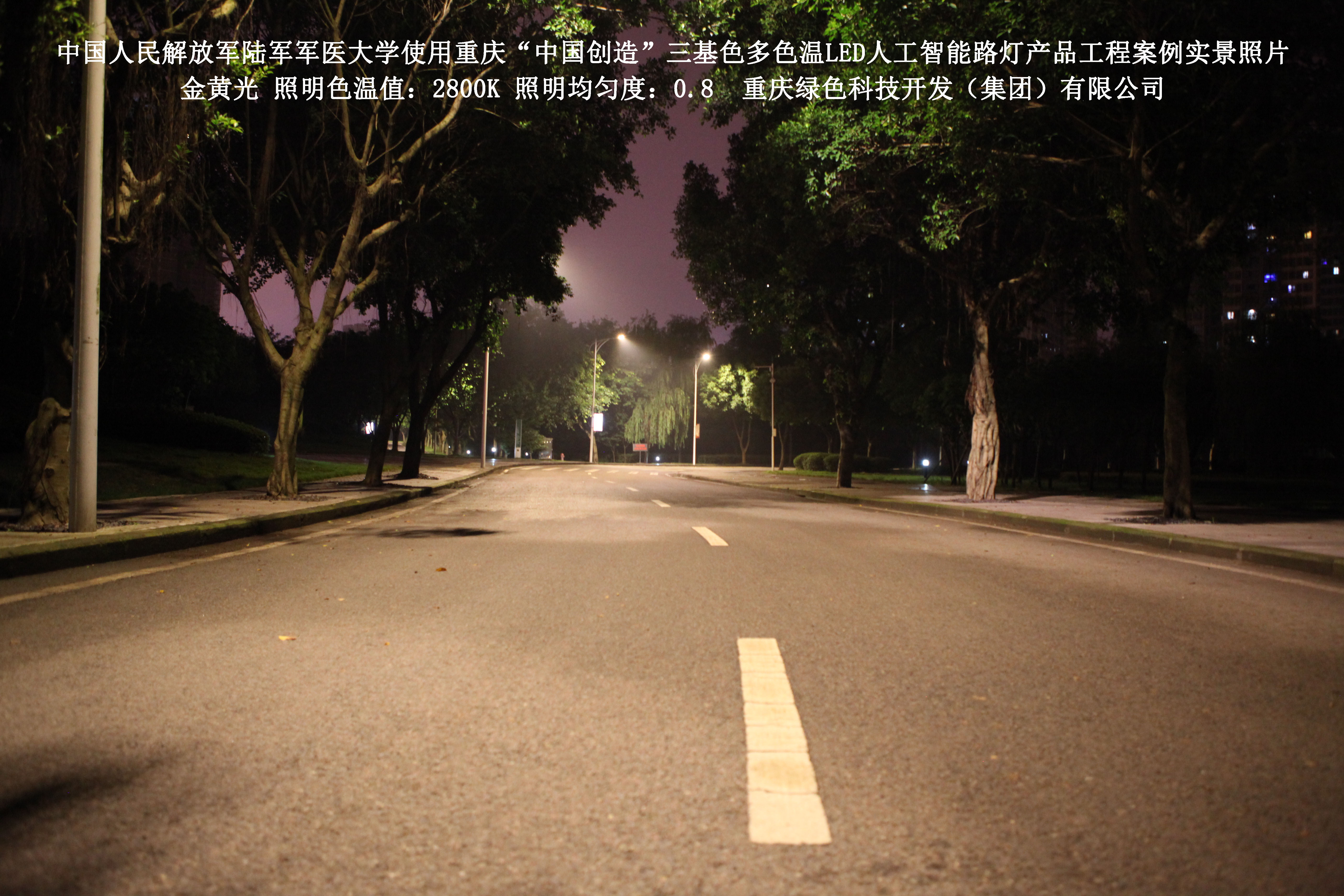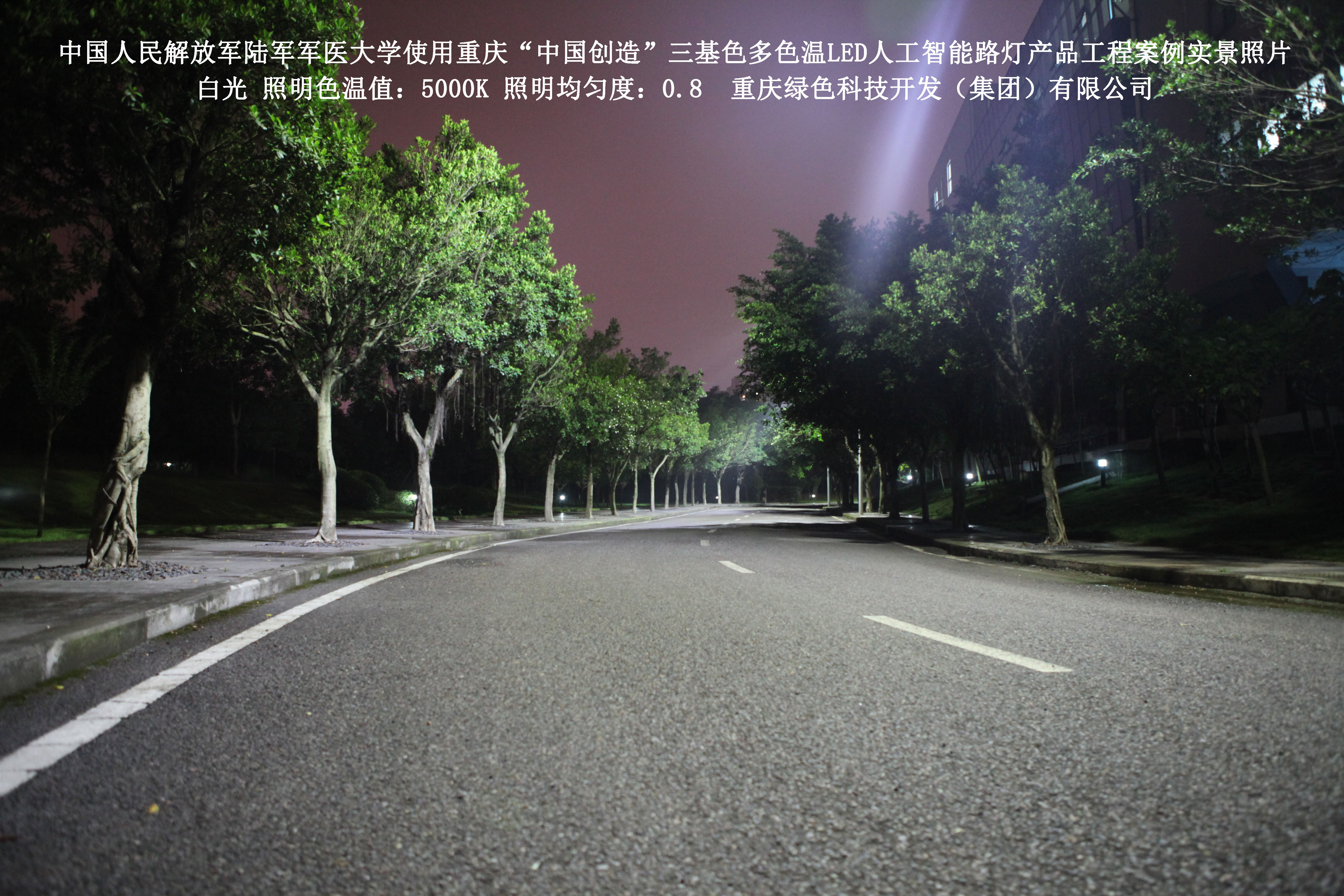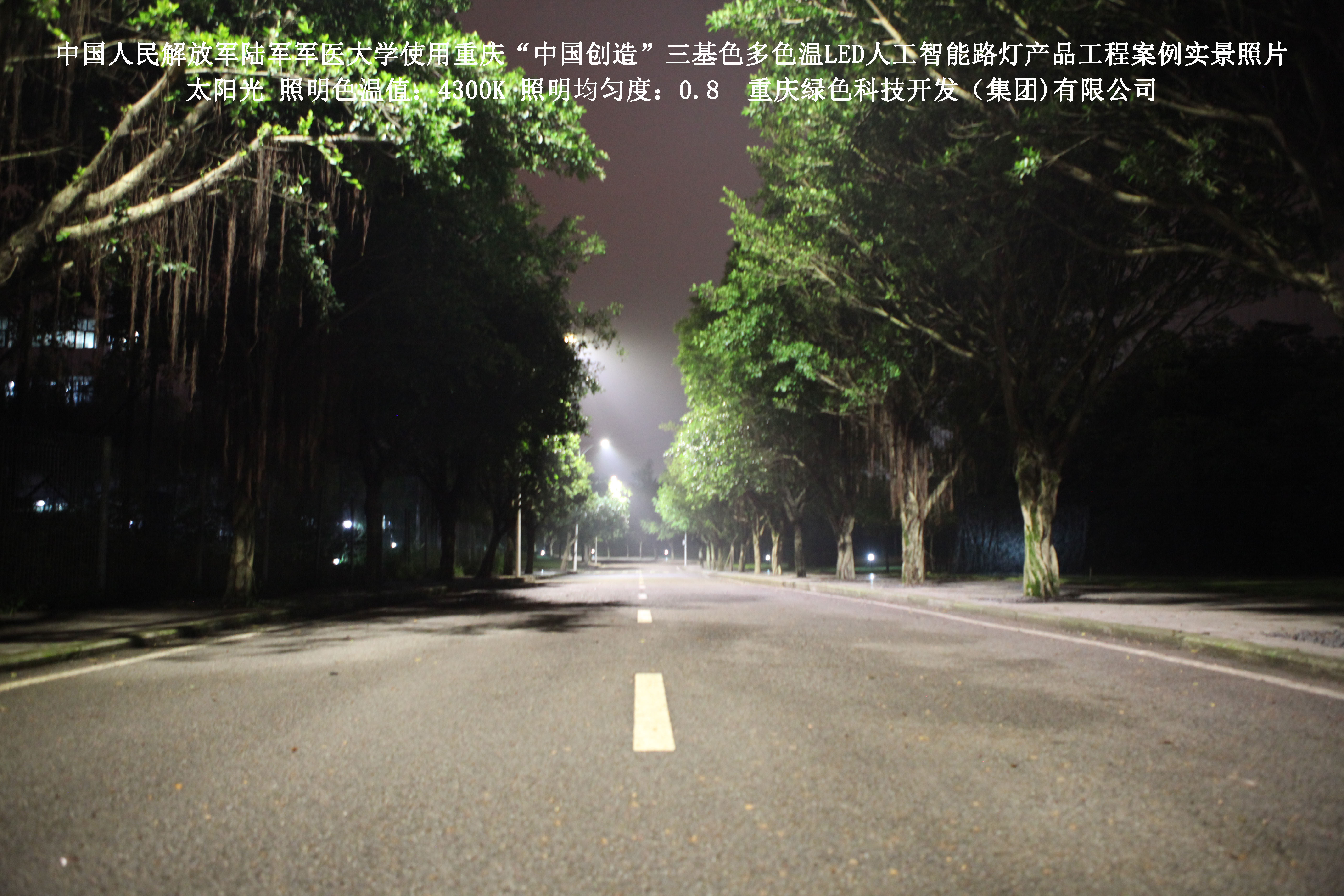 2018年4月,中國人民解放軍陸軍軍醫(yī)大學(xué)使用了我司研發(fā)制造的重慶“中國創(chuàng)造”三基色多色溫LED人工智能路燈,對(duì)沙坪壩大學(xué)城校區(qū)道路實(shí)施了綠色照明科技節(jié)能改造工程,該工程已全面竣工。工程實(shí)施后,極大地提高了照明清晰度、燈光均勻度、舒適度,實(shí)現(xiàn)城市路燈照明系統(tǒng)的智能化管理。