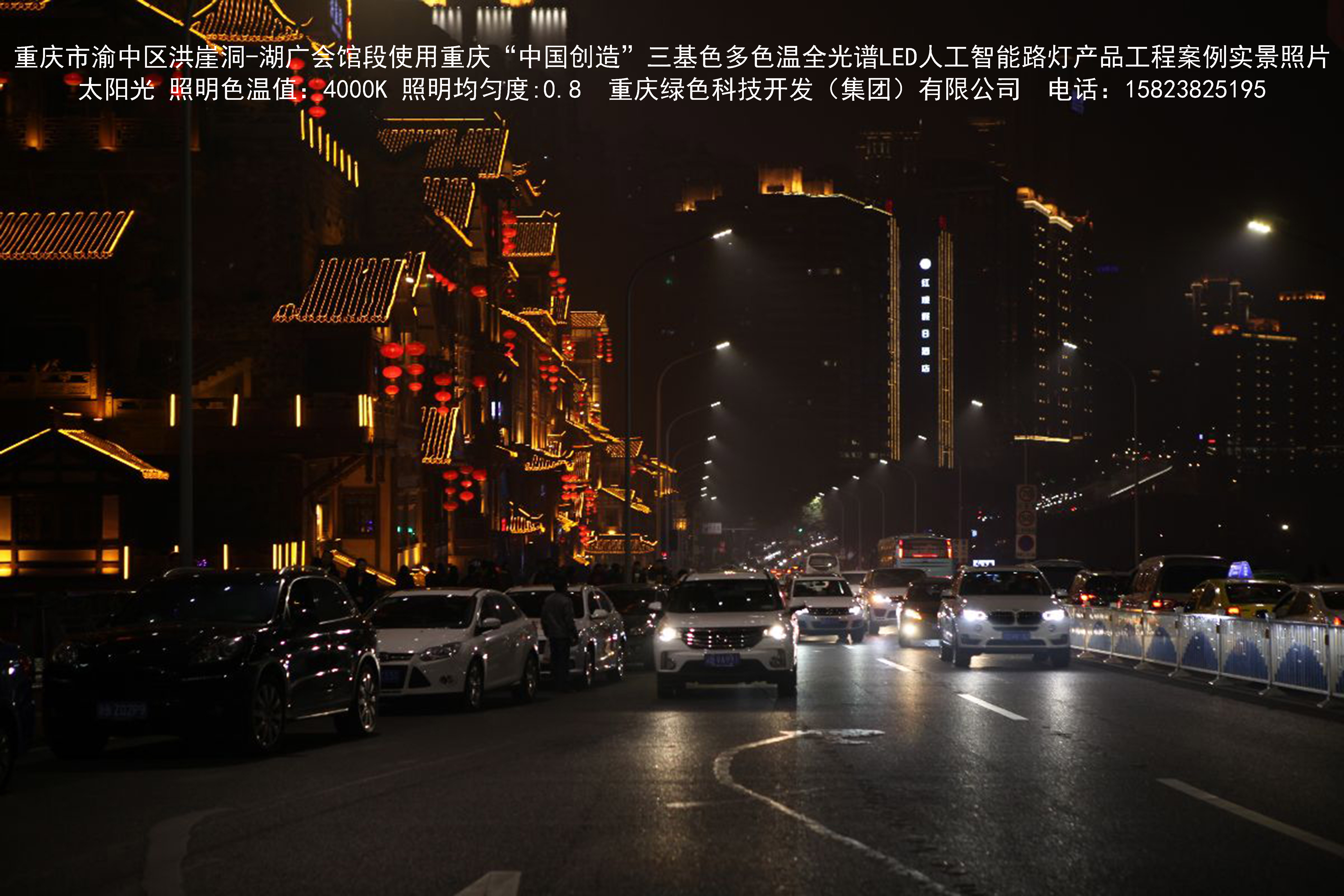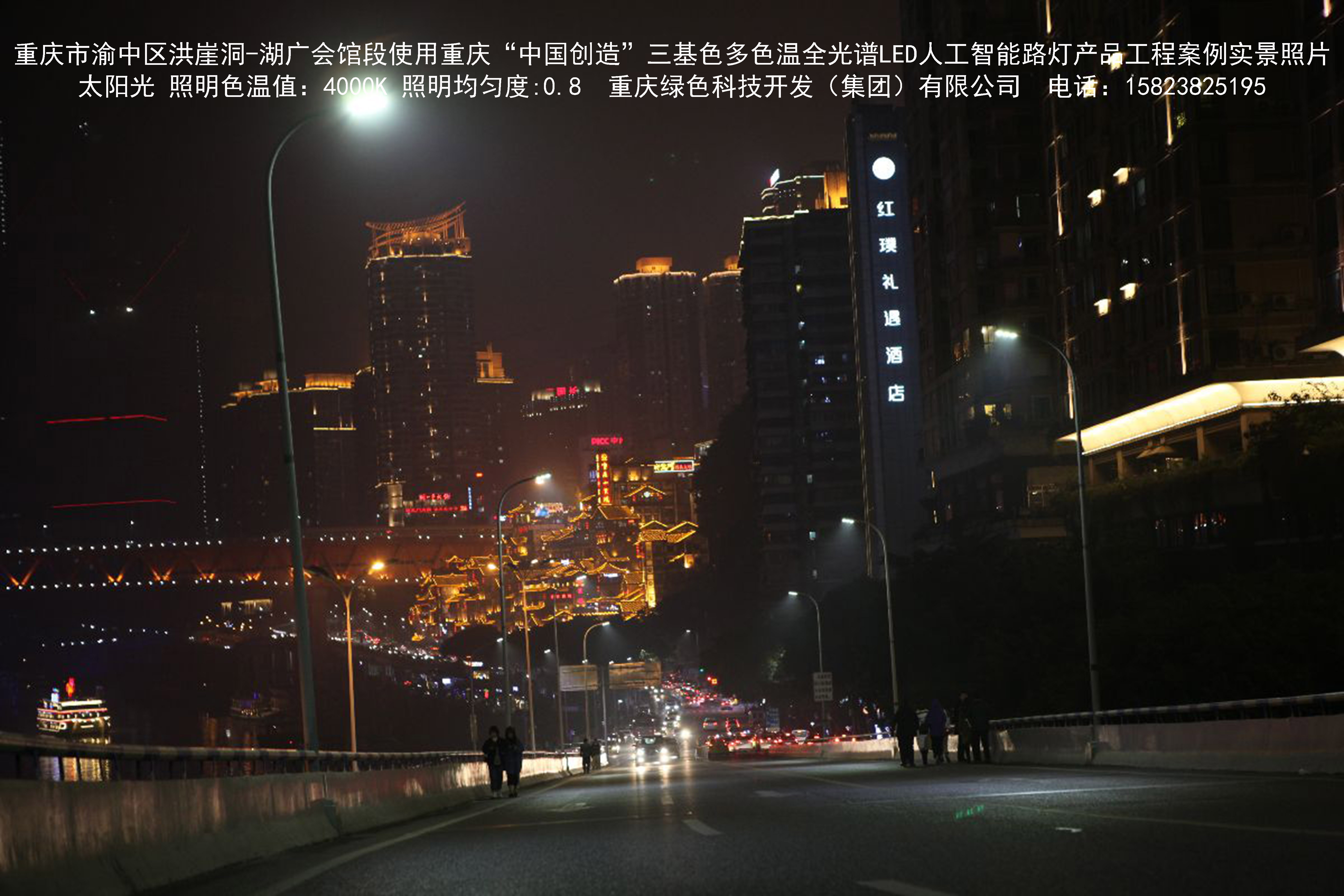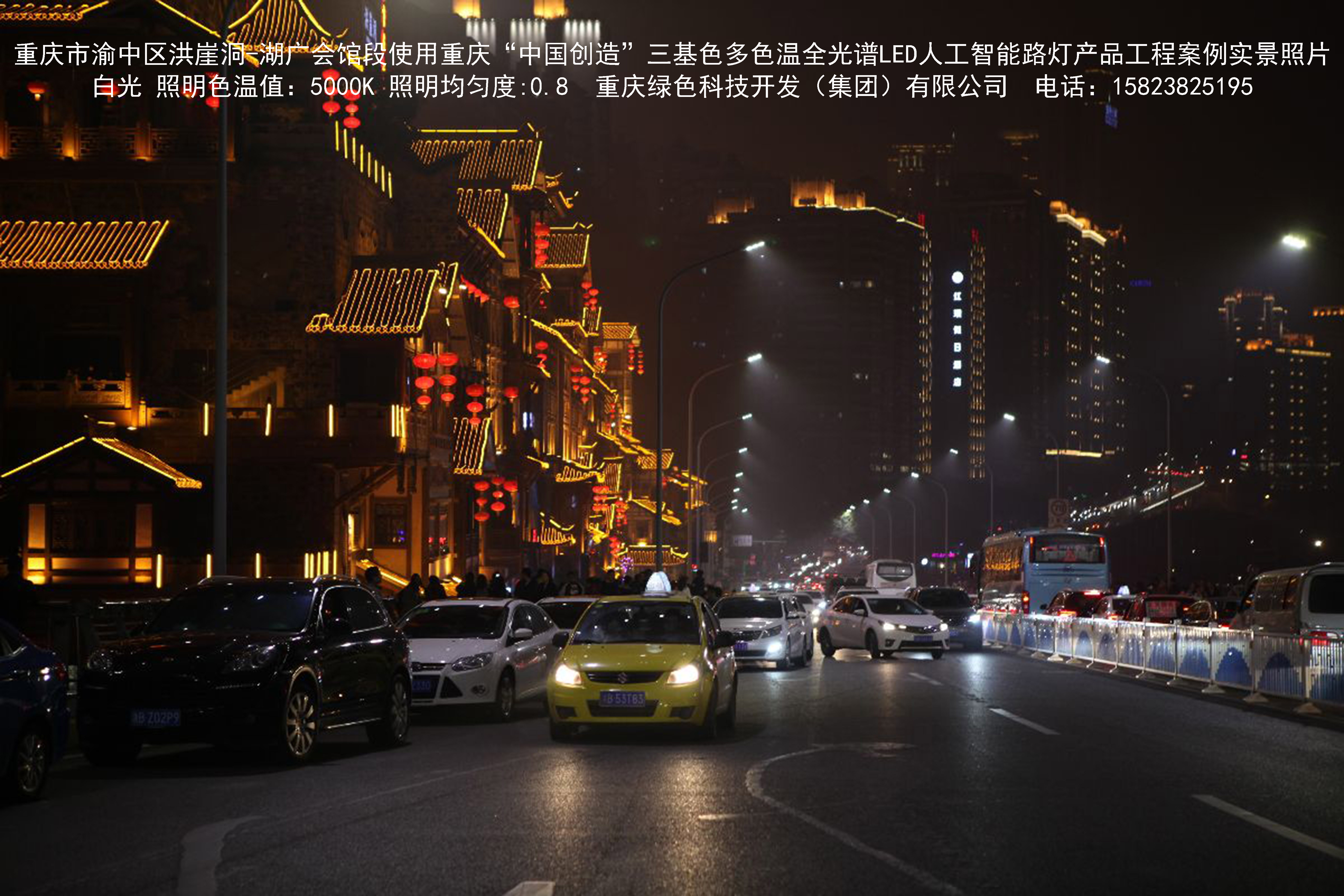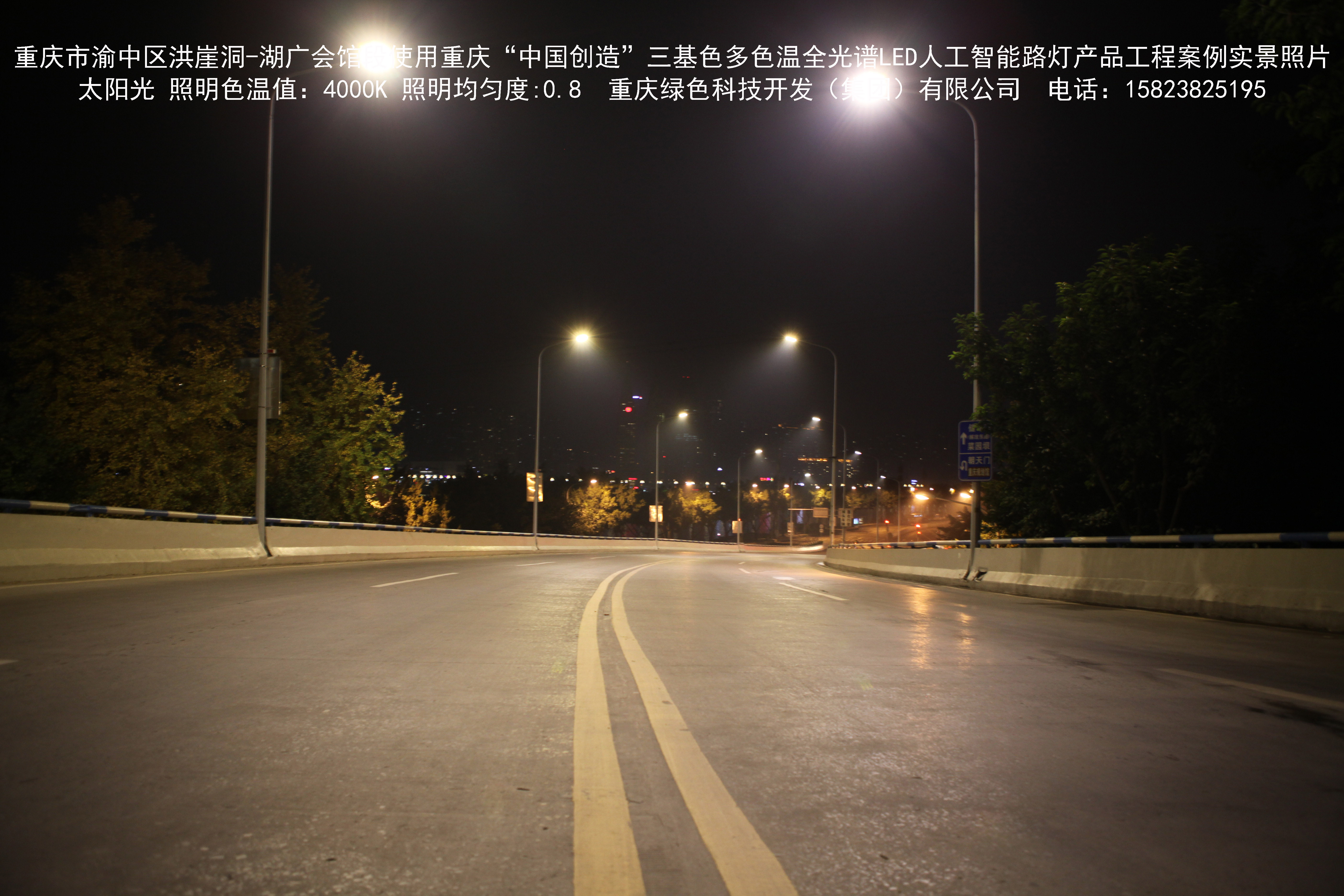 2018年12月,重慶市城市照明管理局使用我司自主研發(fā)制造的重慶“中國(guó)創(chuàng)造”三基色多色溫全光譜LED人工智能路燈系列產(chǎn)品,實(shí)施了渝中區(qū)市政設(shè)施品質(zhì)提升工程。該工程已全面竣工。工程實(shí)施后,極大地提高了城市照明清晰度、燈光均勻度、舒適度。通過(guò)智能終端實(shí)現(xiàn)單燈感知、線纜防盜報(bào)警,與原高壓鈉燈相比,節(jié)能率60%以上,有效解決了關(guān)閉控制回路或間隔關(guān)燈方式造成的照明暗區(qū),確保行人和車輛通行的安全,實(shí)現(xiàn)城市路燈照明系統(tǒng)的智能化管理,推進(jìn)了智慧城市建設(shè)。