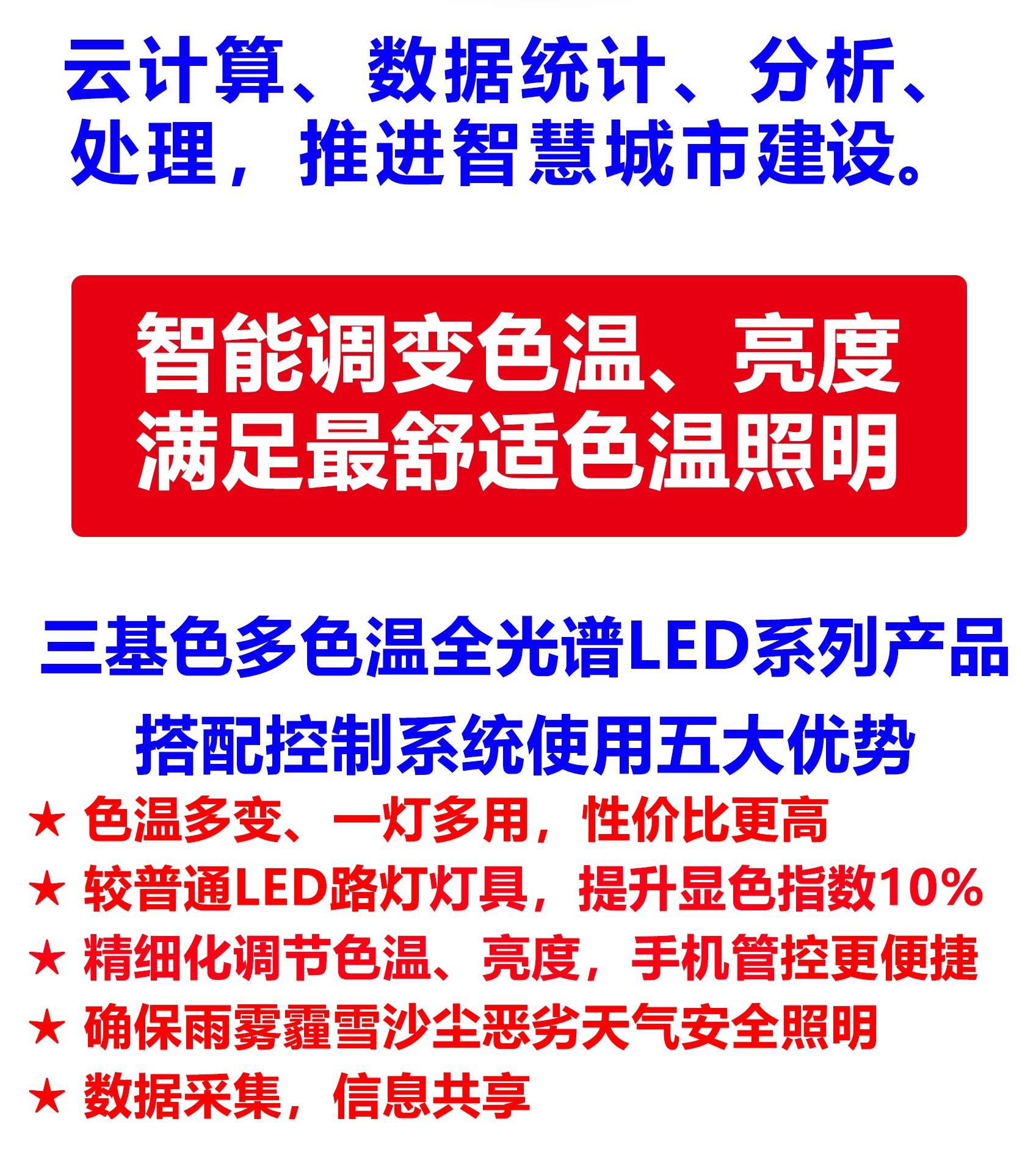 重慶“中國創(chuàng)造”三基色多色溫全光譜LED人工智能路燈技術(shù)特點(diǎn)介紹