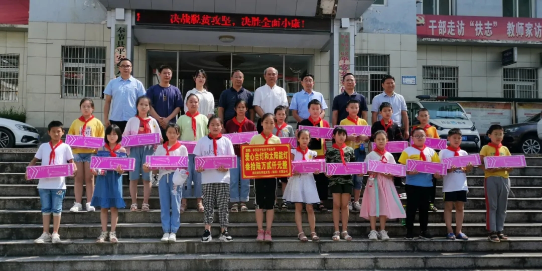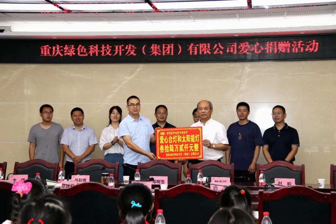 2020年8月5日,重慶綠色科技開發(fā)(集團)有限公司支持國家級重點貧困縣精準扶貧工作,通過重慶市大愛渝商慈善基金會,向奉節(jié)縣平安鄉(xiāng)平安小學捐贈多色溫多亮度無頻閃LED學習型護眼臺燈612盞、太陽能智慧燈桿4套,總價值36.2萬元的愛心物資,助力脫貧攻堅。