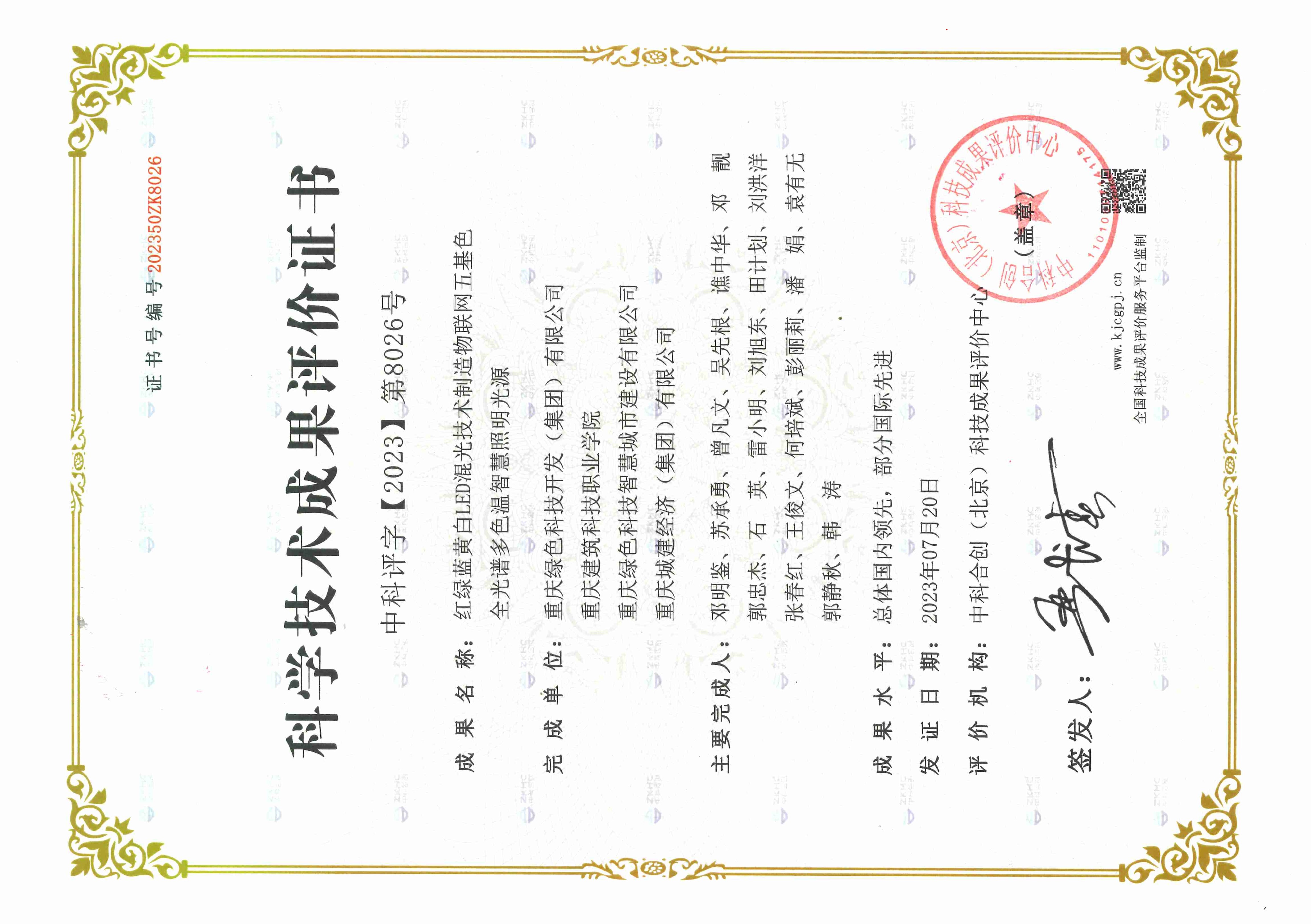 2023年7月11日,中科合創(chuàng)(北京)科技成果評價中心組織專家,在北京對我司“紅綠藍黃白LED混光技術(shù)制造物聯(lián)網(wǎng)五基色全光譜多色溫智慧照明光源”項目進行了科技成果評價。